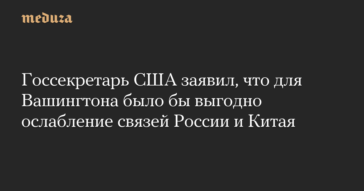 Госсекретарь США Марко Рубио заявил, что Вашингтон хочет ослабить связи России с Китаем, но не хочет сеять разногласия между странами. Об этом он сказал в интервью американскому консервативному изданию Breitbart News, передает Bloomberg.